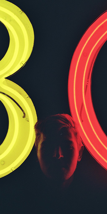 Two ghostly white figures in coveralls and helmets are softly dancing.